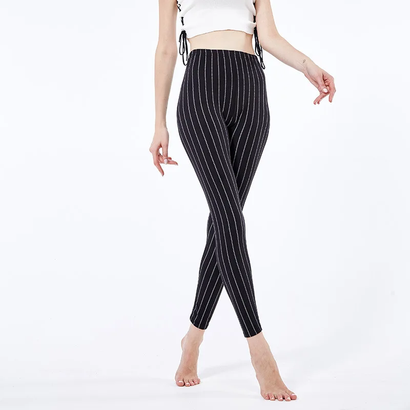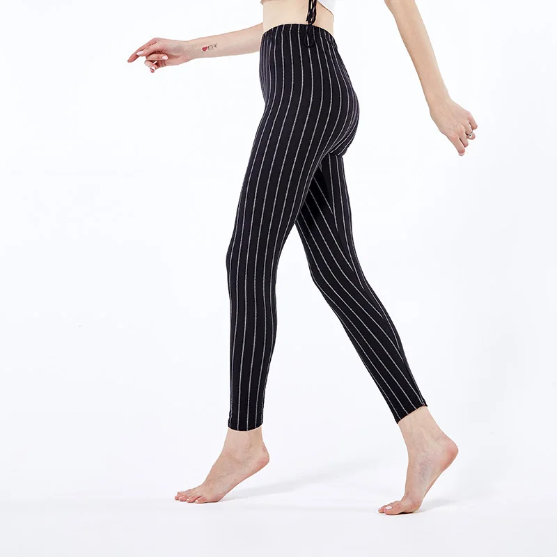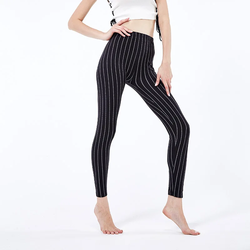 LIMITED PRODUCT 4000254776841 Europe And America Fine Vertical Striped Black And White with Pattern Qmilch Leggings Women's Print